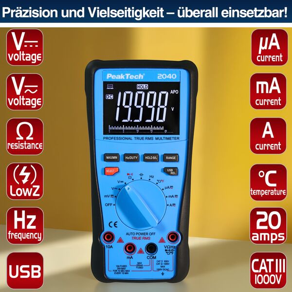 PeakTech® P 2040 True RMS 1000V Digital Multimeter 20000 Counts, USB