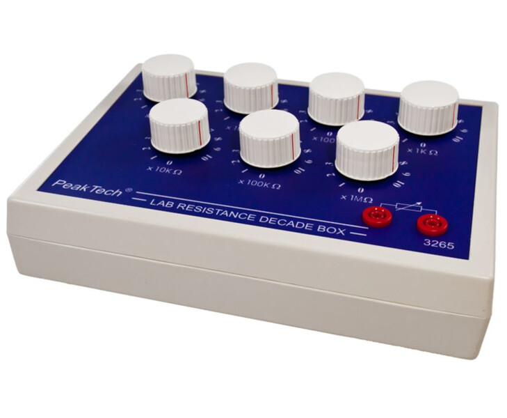 Laboratory decade box with slide switches for production testing, teaching materials,